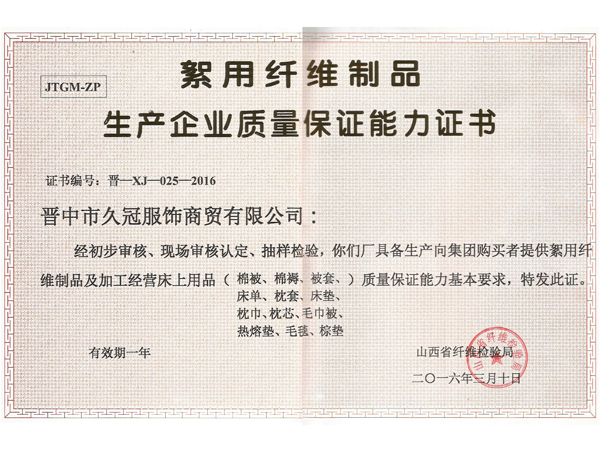 山西久冠服飾有限公司位于晉商故里山西省晉中市。公司注冊商標(biāo)“久冠”,是山西省教育學(xué)會學(xué)生服被裝專業(yè)委員會會長單位,中國質(zhì)量萬里行促進(jìn)會理事單位,中國教育裝備行業(yè)協(xié)會學(xué)校后勤裝備管理分會常務(wù)理事單位。